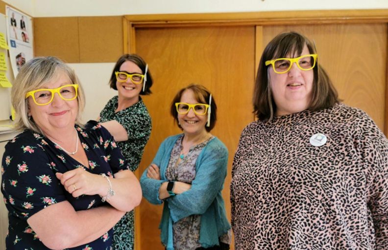 Alison also led a session at the Board meeting which emphasised understanding patients’ experiences, seeing the different stages of the experience through their eyes. For this, the participants split into four groups, each given a different coloured pair of glasses. The sunglasses were used to represent different people having an annual health check: someone going with agency support, someone with profound and multiple learning disabilities, someone with medical anxiety and someone who struggles with their mental. The people in each group imagined the experience through their eyes and were asked to consider what would be tricky for them and what could be done to make the experience better.